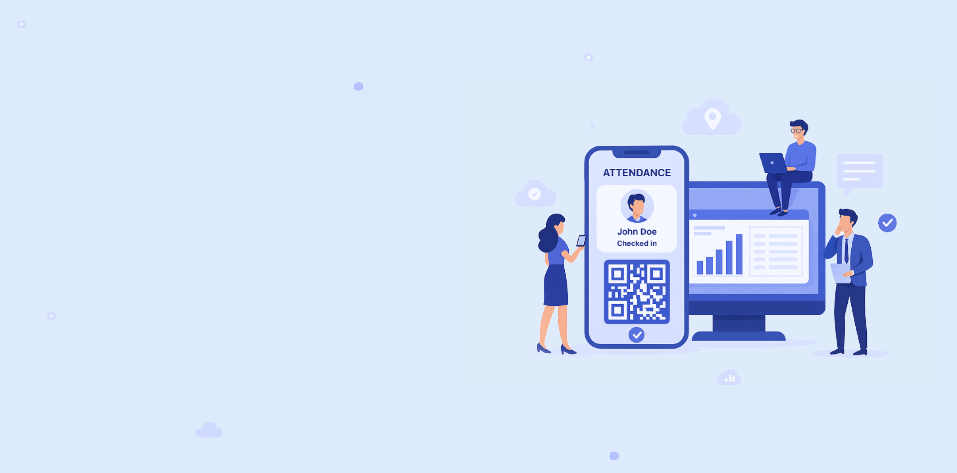 Whether on-site, hybrid, or remote, our solution supports flexible attendance tracking with IP-based and GPS-based check-ins, facial recognition, and integration with HR tools to simplify time and performance tracking.